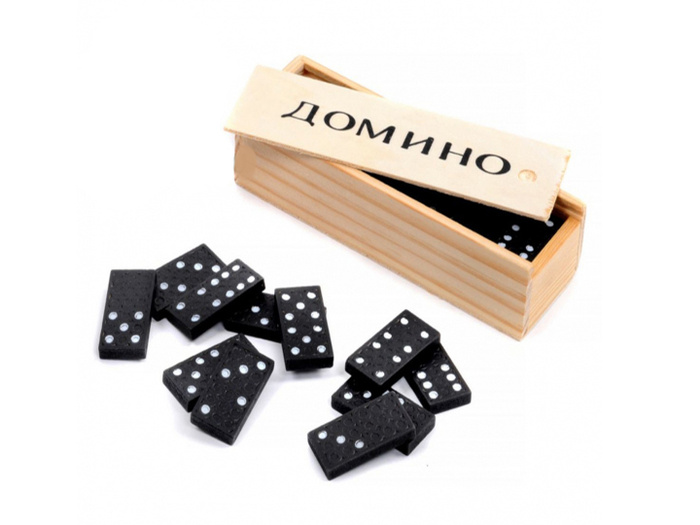 —Домино (пластиковые фишки) в деревянной коробке 14х5 см, P00070