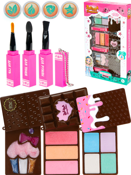 Набор детской косметики, ( сухие тени, блеск для губ, румяна, помада, аппликатор, кисть), КС-8697