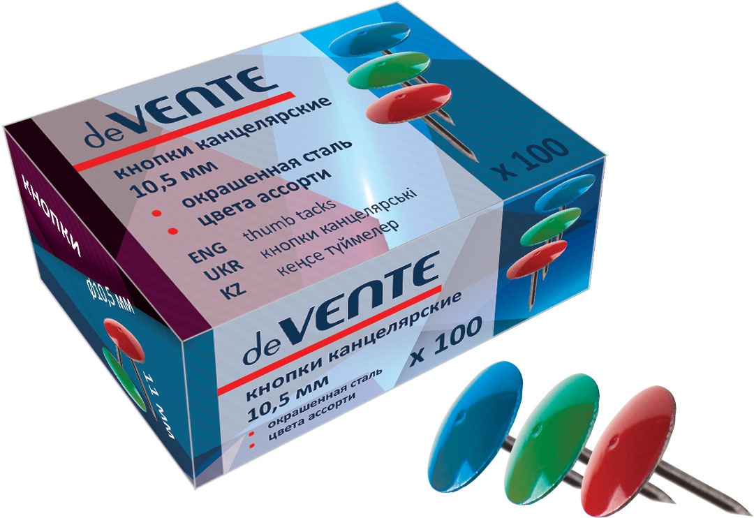 —Кнопки канцелярские 10,5 мм 'deVENTE' окрашенная сталь 100 шт , в упаковке, 4132305