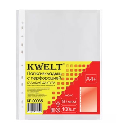 Файлы А4, KWELT, 50 мкм, (100 шт;уп), глянцевые, KP-00035