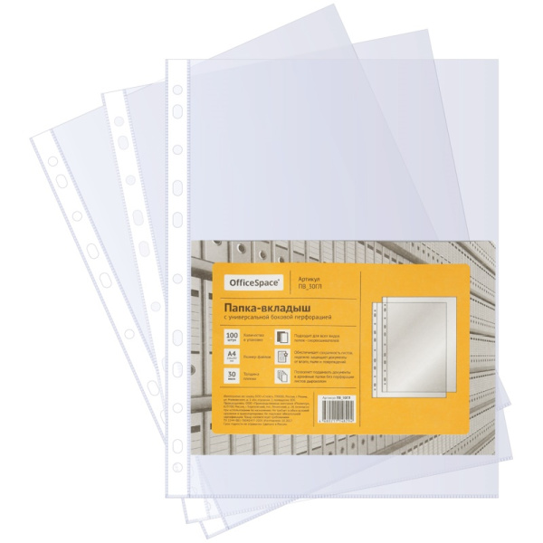 Папка-вкладыш с перфорацией (файл) «OfficeSpace», А4, глянцевая (30 мкм.) арт. ПВ_30ГЛ