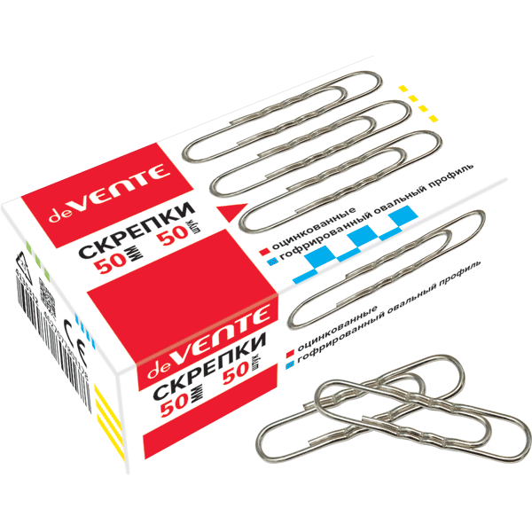—Скрепки металлические 50 мм deVENTE гофрированные оцинкованные (50 шт;уп), 4135312