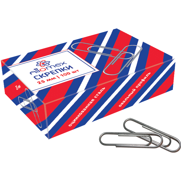 Скрепки металлические, Attomex, овальные, оцинкованные 25 мм, (100 шт;уп), 4135300