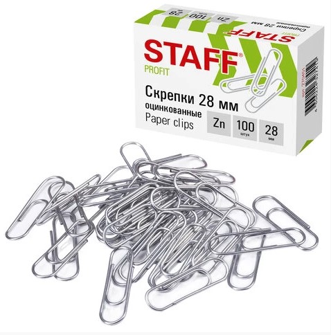 —Скрепки 28 мм, STAFF, оцинкованные, (100 шт;уп), 270451