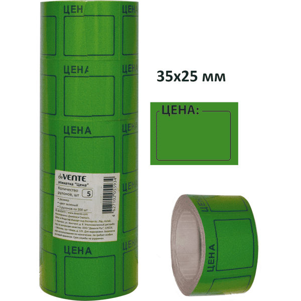 Этикетка Цена 'deVENTE' 35x25 мм, зеленая, 200 шт в рулоне, 2061507
