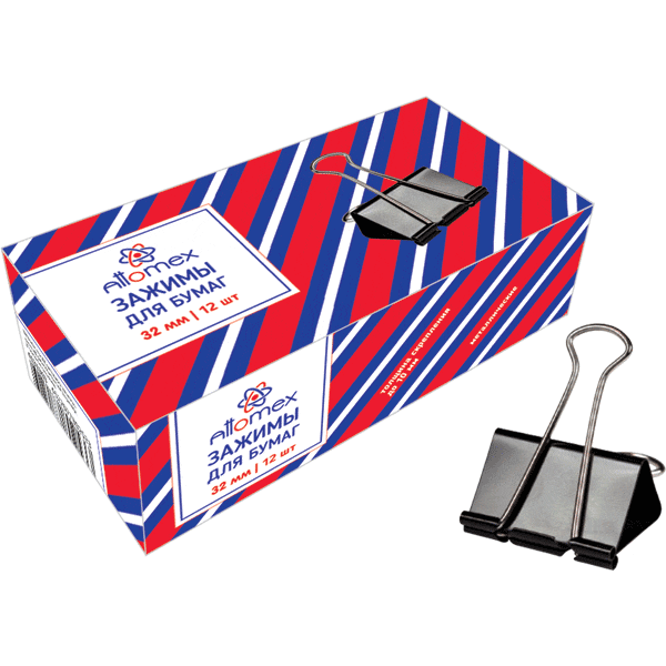 —Зажим для бумаг 'Attomex' металлический (32 мм) толщина скрепления до 13,5 мм, черный, 4131303