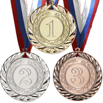 Медаль 1 место металлическая, d-6.5 см., лента триколор