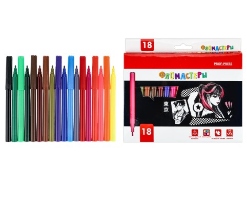 Фломастеры с вентилир колпачком 18 цв. BLACK ANIME, ФВ-2569