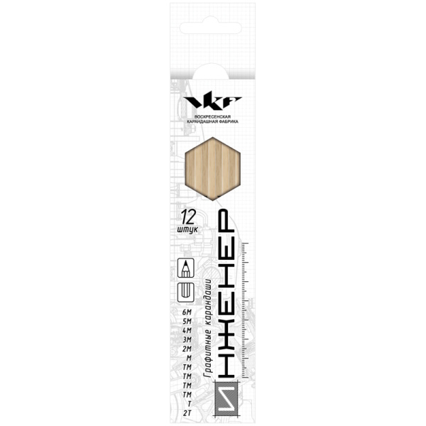 Набор чернографитных карандашей 'Инженер' 2Т-6М, заточен., картон. уп., европодвес, 12 шт., 12B-1240