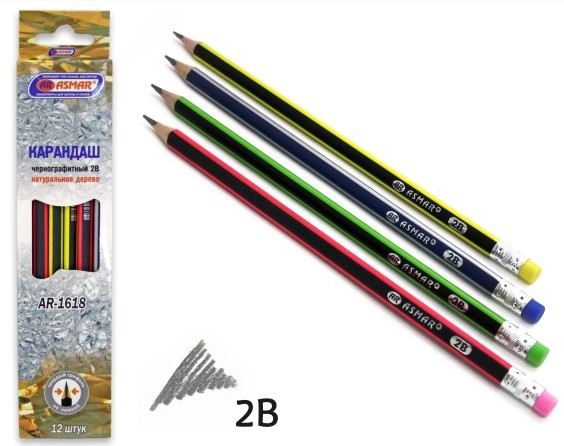 —Карандаш чернографитный 2В трехгранные с ластиком, AR-1618
