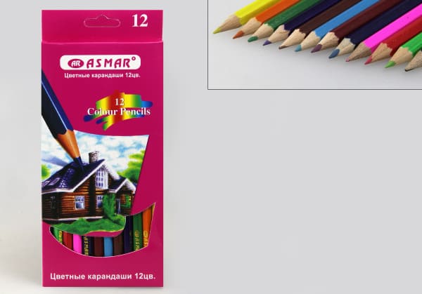 —Карандаши 12 цв.заточен., толщина грифеля 2,65 мм, картон. уп., европодвес AR-9403-12