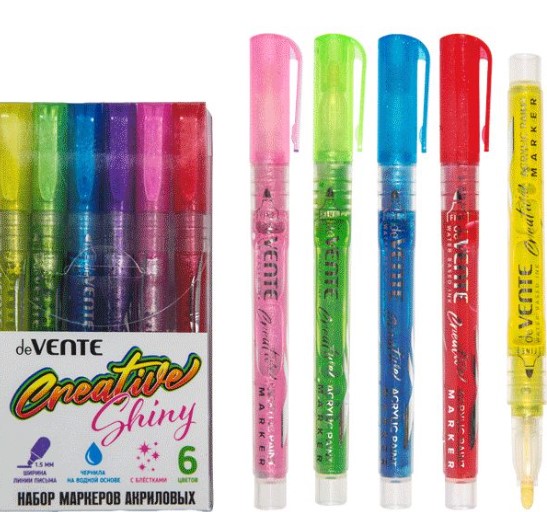 Набор маркеров акриловых deVENTE 6 цв с блестками, ширина линии 1,5 мм., 5044306