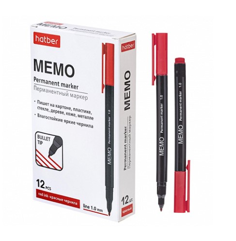 —Маркер, Hatber.Memo, 1 мм, закругленный пищущий узел, красный цвет, PM_072614