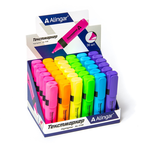 —Текстовыделитель ассорти, ALINGAR, 'Line-Max', прямоугольный корпус, скошеный, 1-5 мм, AL-1140
