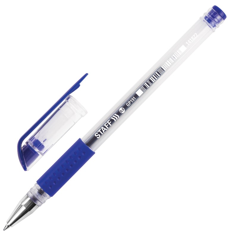 —Ручка гелевая 'STAFF' с грипом, 0,5 мм, линия 0,35 мм, цвет синий, 141822