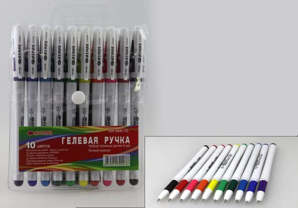Набор гелевых ручек 10 цв., белый корпус,  европодвес, AR-666-10