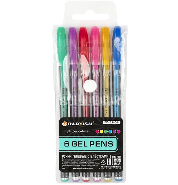 —Набор гелевых ручек 6 цв. Darvish c блестками, 1,0 мм, европодвес, DV-12140-6