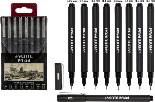 Набор ручек капиллярных "deVENTE.Art", d=0.1/0.2/0,3/0,4/0,5/0,6, чёрный цвет, (8 шт/уп), 5060303