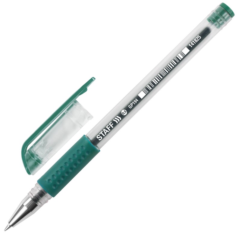 —Ручка гелевая 'STAFF' с грипом, 0,5 мм, линия 0,35 мм, цвет зеленый, 141825