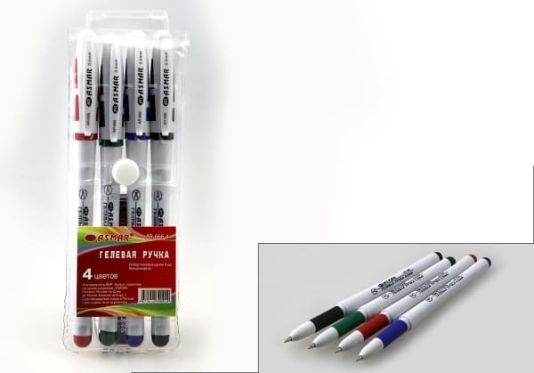 Набор гелевых ручек 4 цв., белый корпус, европодвес AR-666-4