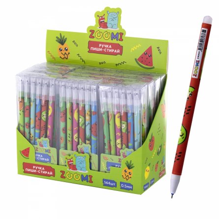 —Ручка гелевая пиши-стирай Zoomi, 'Фрукты', 0,5 мм, синяя, игольчатый наконечник, ZM505