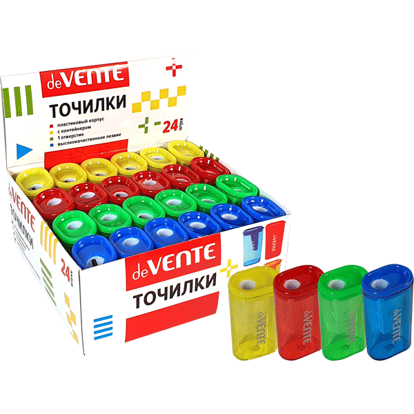—Точилка для карандашей deVENTE 1 отверстие, без контейнера, ассорти, 4071313