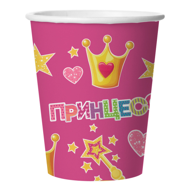 Набор стаканов бумажных , 'Принцесса', 250 мл , розовый , (6 шт;уп), 77386