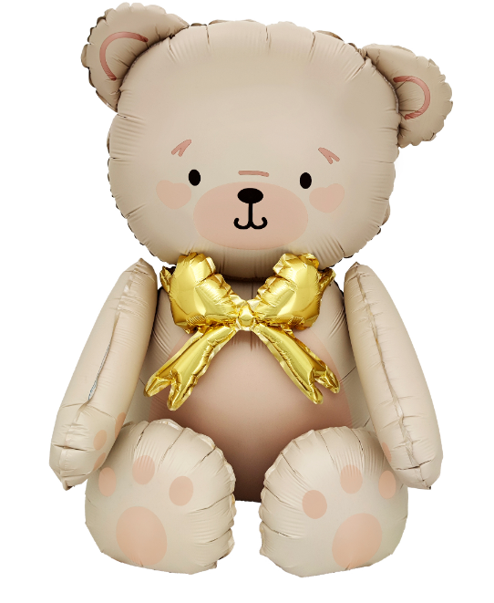 Шар 3D (28"/71 см), Фигура, сидячий мишка с бантиком, 1 шт, 26685