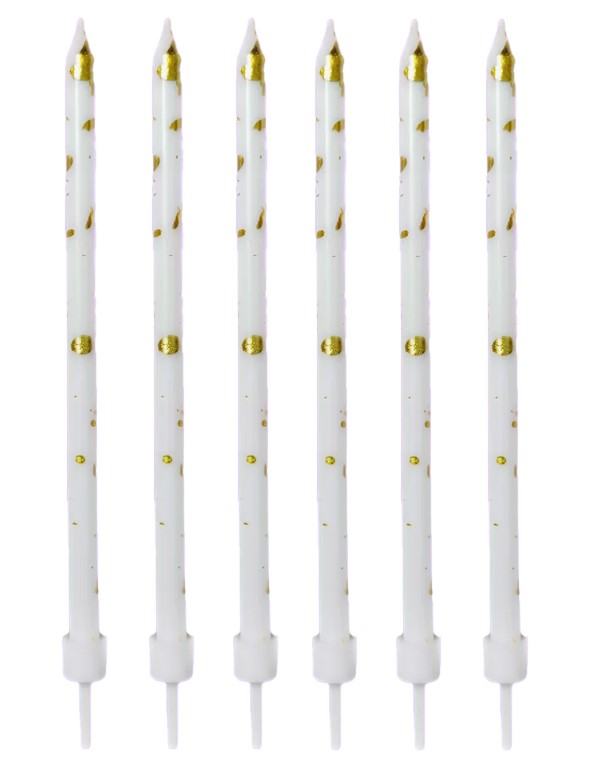 —Свечи тортово-коктейльные Белые с золотом с держателями, 192055