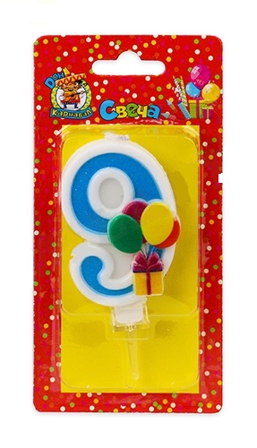 Свеча для торта 'Цифра 9. 'Весёлый праздник', Миленд, картон. уп., европодвес, С-5933