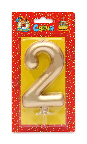 —Свеча для торта 'Цифра 2. Золотой металлик' Миленд, картон. уп., европодвес, С-1864