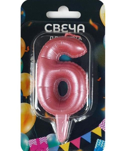 —Свеча на шпажке цифра 6 'Шары' розовая пастель, 3146