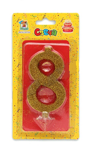 —Свеча для торта 'Цифра 8. Золотой глитер' Миленд, картон. уп., европодвес, С-1900