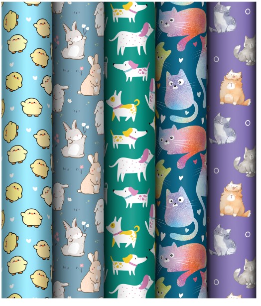 Упаковочная бумага глянц. 70х100 см, MESHU 'Любимые питомцы', 80г;м2, ассорти, MS_53496