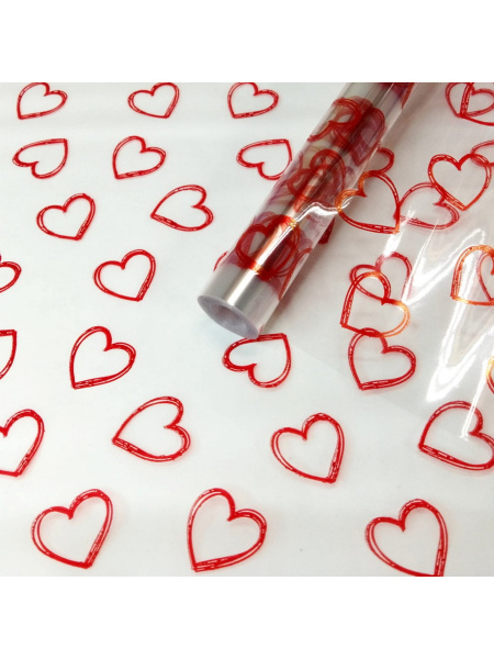 —Пленка прозрачная 'Сердечки контурные', красные, 0,7х7,5 м, 40 мкм, 0,200 кг, 991356