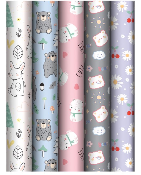 Упаковочная бумага глянц. 70х100 см, MESHU 'Сute friends', 80 г;м2, ассорти, 5 дизайнов, MS_62803