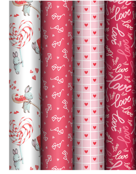 —Упаковочная бумага глянц. 70~100см, MESHU 'Love', 80 г;м2, ассорти, 4 дизайна, MS_62827