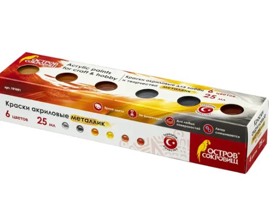 —Краски акриловые Остров сокровищ 'Металлик' 6 цв 25 мл, 191691