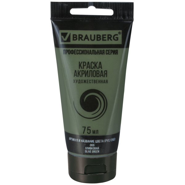 Краска акриловая художественная BRAUBERG ART CLASSIC , туба 75 мл , ОЛИВКОВАЯ, 191106