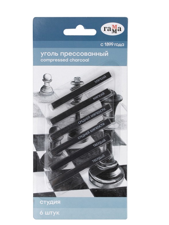 —Уголь прессованный Гамма 'Студия', ассорти, квадратный, 6 шт., блистер, европодвес, 080219_08