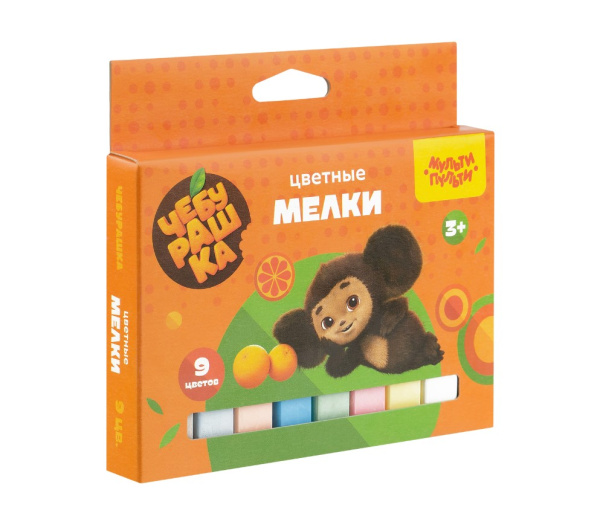 Мелки цветные Мульти-Пульти 'Чебурашка', 9 цв, картонная коробка, европодвес, ЦМЧБ_53009