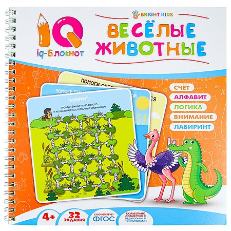 'IQ-блокнот' ВЕСЕЛЫЕ ЖИВОТНЫЕ (РБ16-6926) 215~215, полноцв 16л+обл, бл офс100г обл мел карт, гребень