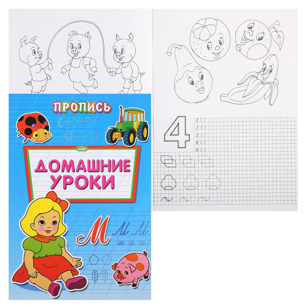 —Пропись-расскраска, А4, 'Домашние уроки', 8 листов, ПР-6510
