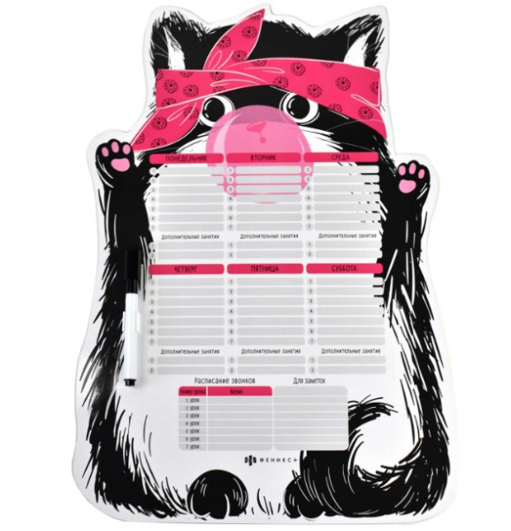 —Магнитное расписание, ЧЁРНЫЙ КОТ, ферроагломерированный полимер, 297х420 мм, 59579
