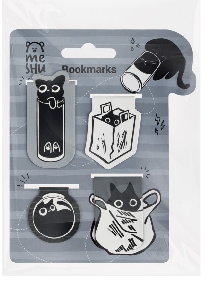 Закладки магнитные для книг, 4 шт, MESHU 'Meow Sy', соф-тач, MS_66071