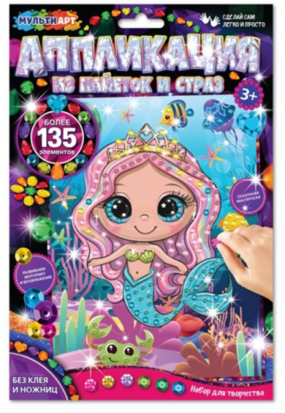 —Аппликация со стразами и пайетками, Русалка, МУЛЬТИ АРТ, 396015