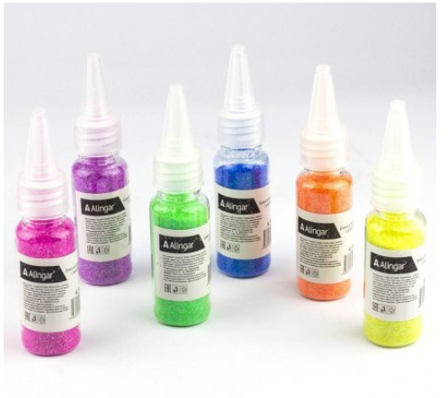 —Блестки для декора Alingar, 20 гр, 6 цветов х 2 шт, ассорти, пластик. баночка с дозатором, AL6481