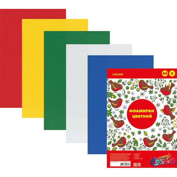 —Фоамиран цветной A4 'deVENTE' 5 цв, 5 л, толщина 1 мм, 8040798