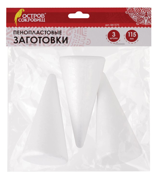 Пенопластовые заготовки для творчества Конусы, 3 шт., 115 мм, ОСТРОВ СОКРОВИЩ, 661375