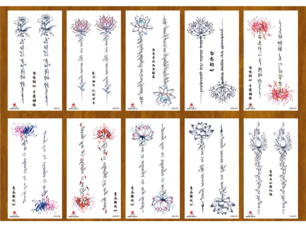 Татуировка-наклейка (11,4х 21 см) Надписи с цветами, ТА-1762